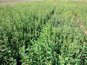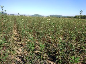 (4)授粉樹配置:藍靛果是自花結(jié)實率很低的樹種,生產(chǎn)上必須配置授粉數(shù),建園時要同時種植2-3個品種。主栽品種和授粉樹的比例為2-5:1。