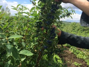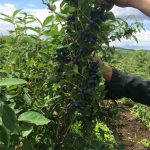 (2)大果(0.9~1.3g),長圓形,幾近黑色,有薄果粉。果味酸甜帶有苦味,中早熟,可一次性采收,不落果。植株長勢強健,掛果快,高產(chǎn)。加工型品種。